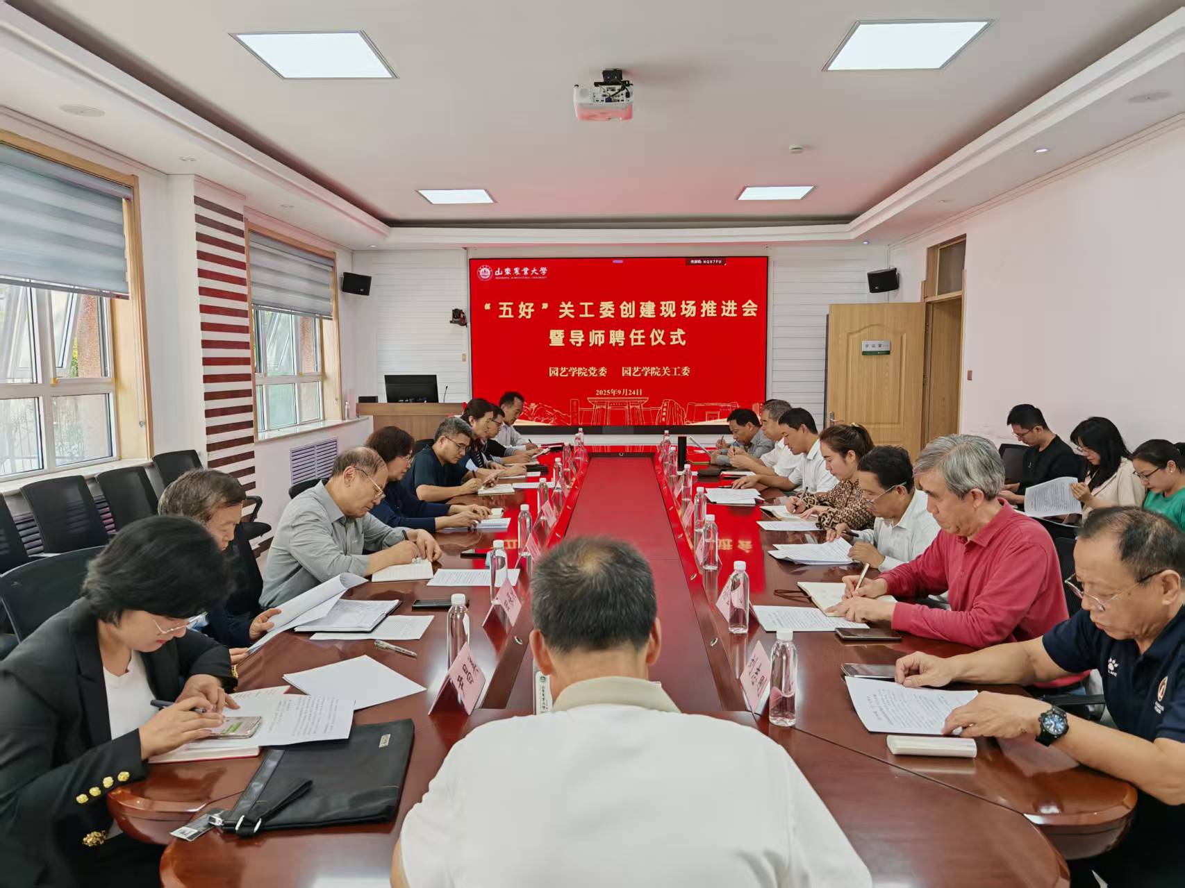 2025 年 9 月 24 日,園藝學(xué)院在伯善樓 111 會(huì)議室隆重召開“五好”關(guān)工委創(chuàng)建現(xiàn)場(chǎng)推進(jìn)會(huì)暨導(dǎo)師聘任儀式。學(xué)校黨委原副書記、關(guān)工委主任朱莉、校關(guān)工委領(lǐng)導(dǎo)、園藝學(xué)院領(lǐng)導(dǎo)、各二級(jí)教學(xué)學(xué)院關(guān)工委副主任、“雙導(dǎo)師”代表和園藝學(xué)院全體輔導(dǎo)員參加活動(dòng)。